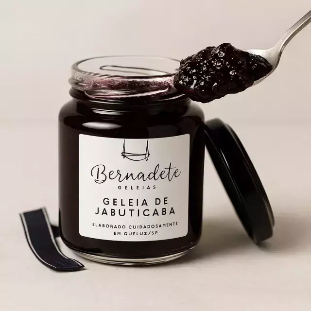 A jabuticaba é uma fruta nativa do Brasil, colhida tradicionalmente no quintal das casas mineiras e paulistas. O modo artesanal de preparo da Bernadete remonta às receitas passadas de geração em geração, com equilíbrio entre rusticidade e cuidado técnico. O resultado é uma geleia que representa a alma da nossa terra doce, viva e cheia de memória afetiva.