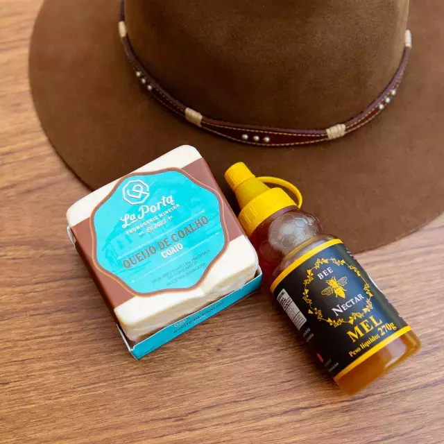 Essa combinação é um clássico da roça: o salgado suave do queijo coalho e o dulçor do mel sempre estiveram presentes nas mesas de fazenda, seja no café da manhã reforçado ou como petisco de encontros. Aqui, ela ganha força extra com o cuidado artesanal de dois produtores que honram tradição, simplicidade e pureza em cada detalhe.
