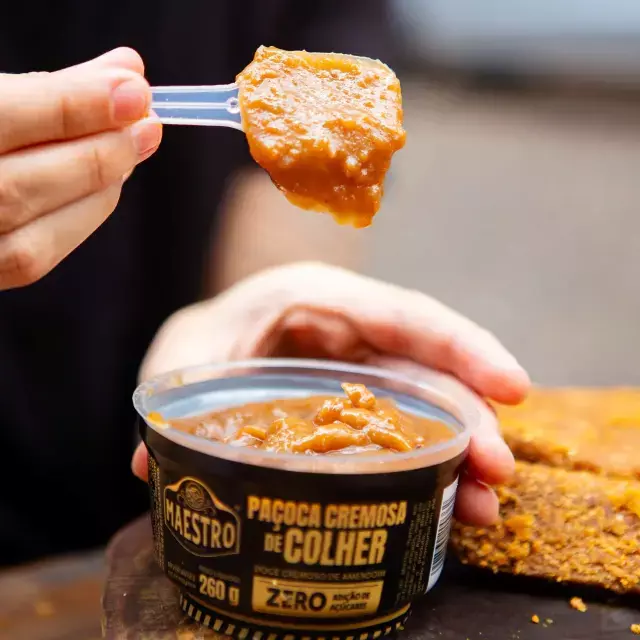 Sabor de infância, textura de gourmet e zero adição de açúcar. A Paçoca Cremosa de Colher Maestro é uma daquelas delícias que abraçam o paladar com afeto, trazendo o gosto autêntico do amendoim em uma versão mais leve e consciente. Perfeita para quem não abre mão do sabor, mas busca equilíbrio e saúde no dia a dia.