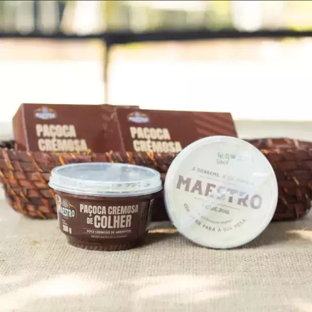 A Maestro se tornou referência em paçoca cremosa gourmet no Brasil. Esta versão resgata o sabor original da paçoca tradicional, com mais suavidade na textura e um toque moderno na apresentação. Ideal para quem busca produtos afetivos com cara de sobremesa contemporânea.