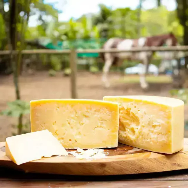Inspirado nos queijos duros europeus como Parmigiano Reggiano, o Quincas Terroir é feito com leite cru de altíssima qualidade, e passa por uma longa cura sob controle de temperatura e umidade. Seu nome homenageia o produtor Quincas e representa a conexão entre o tempo, o leite e o terroir da Mantiqueira. Cada peça carrega a história da montanha, da fazenda e do cuidado artesanal.